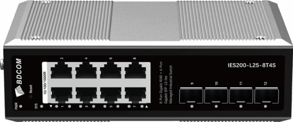 Switch Industrial L3-lite 8-P Gb RJ45 + 4xSFP (2-way DC12~55V redundant dual power input and 1-way DC12V input; operating temperature: -40~75?C; lightning protection level of 6KV; IP40; DIN-rail installation)