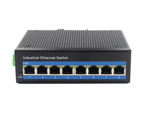 1000Mbps 8-Port RJ45 ,Din-rail design, Power supply: DC12-52V work temperature 40℃ +80℃.